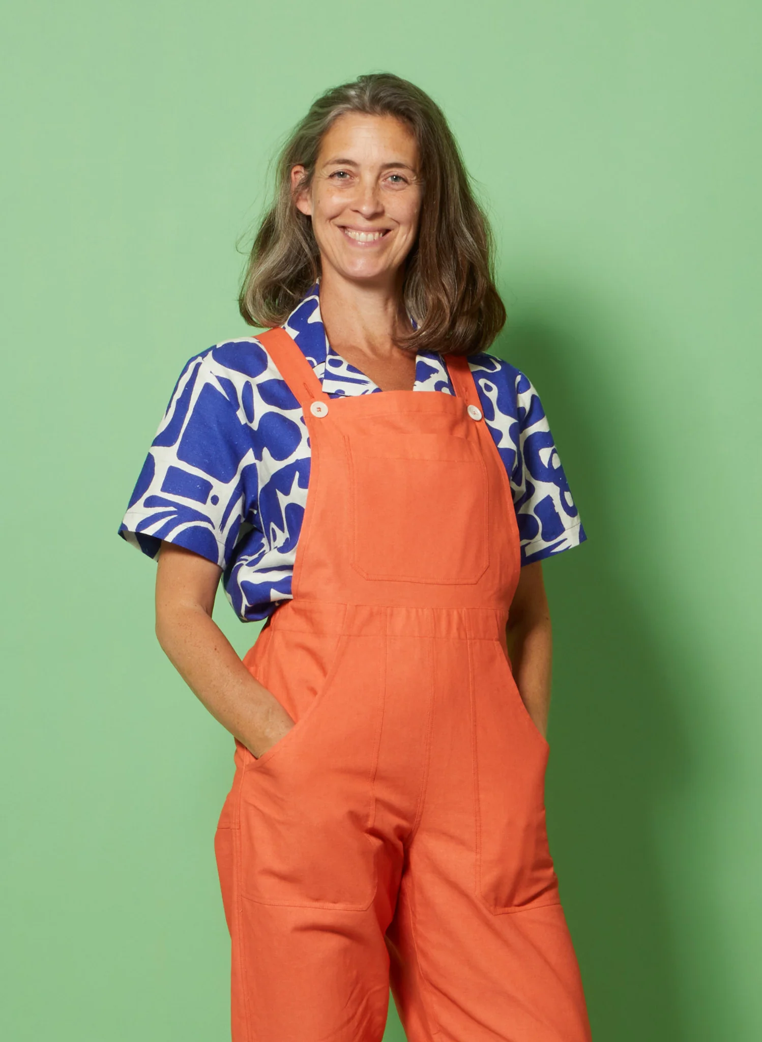 About the Style: Get comfy and colourful in Palava's Bonnie dungarees. Bonnie is inspired by vintage workwear, has extra roomy pockets (yes, even for us!) and adjustable straps. Our Bonnie dungarees now have a line of elastic at the back to tie the waist in slightly and improve their fit.