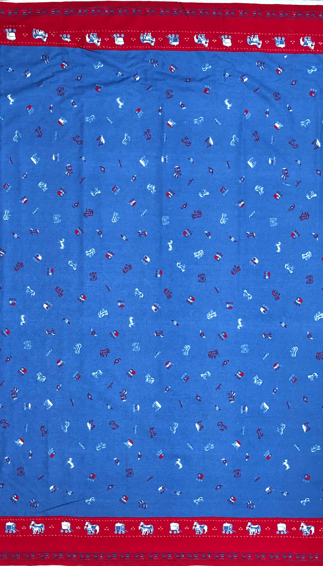 This fabric is from the Palava archives, the hand illustrated print depicts a 'ditsy' caravan scene alongside the horse and wagon.